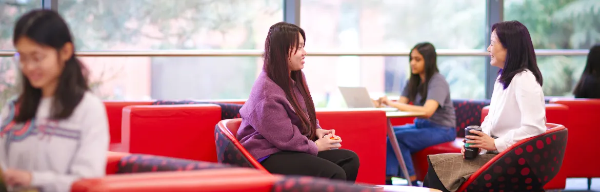 With comfortable seating, group study rooms, and quiet zones for independent research, it's a versatile space that supports a range of working styles. Whether you're preparing for assessments, working on your dissertation, or meeting with peers to collaborate on projects, the Hub is designed to help you stay productive and engaged.