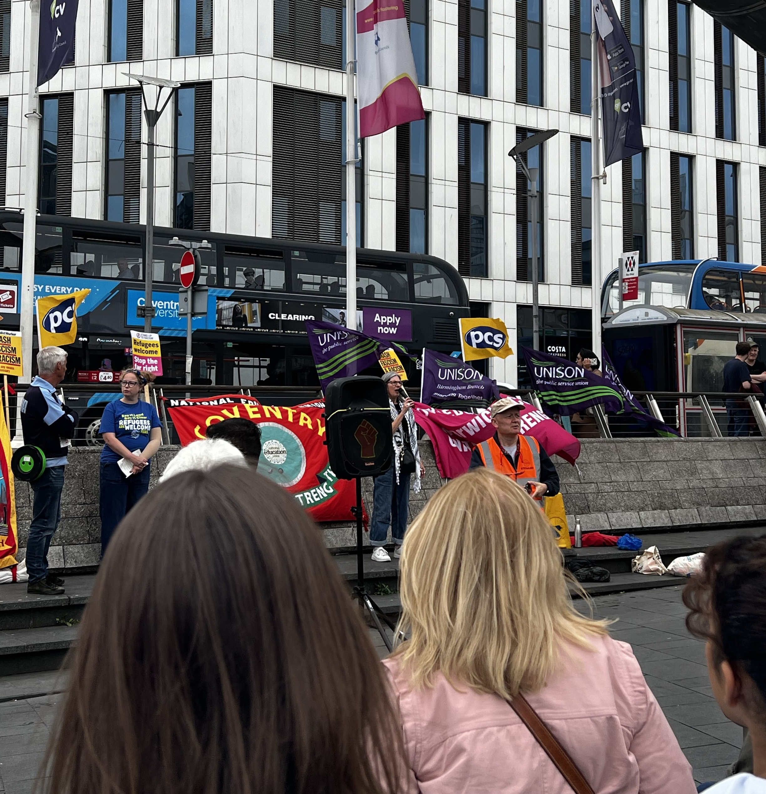 Coventry UNISON, UCU, CWU, PCS and NEU branches at a local rally in Coventry on Saturday 10 August