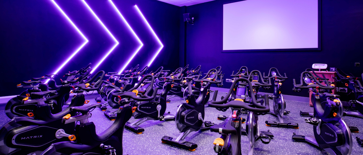 - Studio cycling: indoor, instructor-led, music-driven