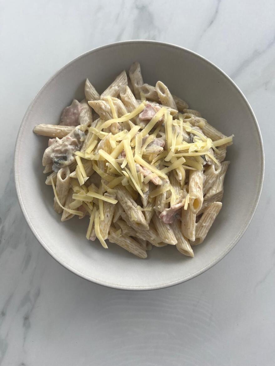 A yummy pasta dish to keep you going through the winter months.The baby board beans bulk our the meal, so just leave out the bacon to make it vegetarian.