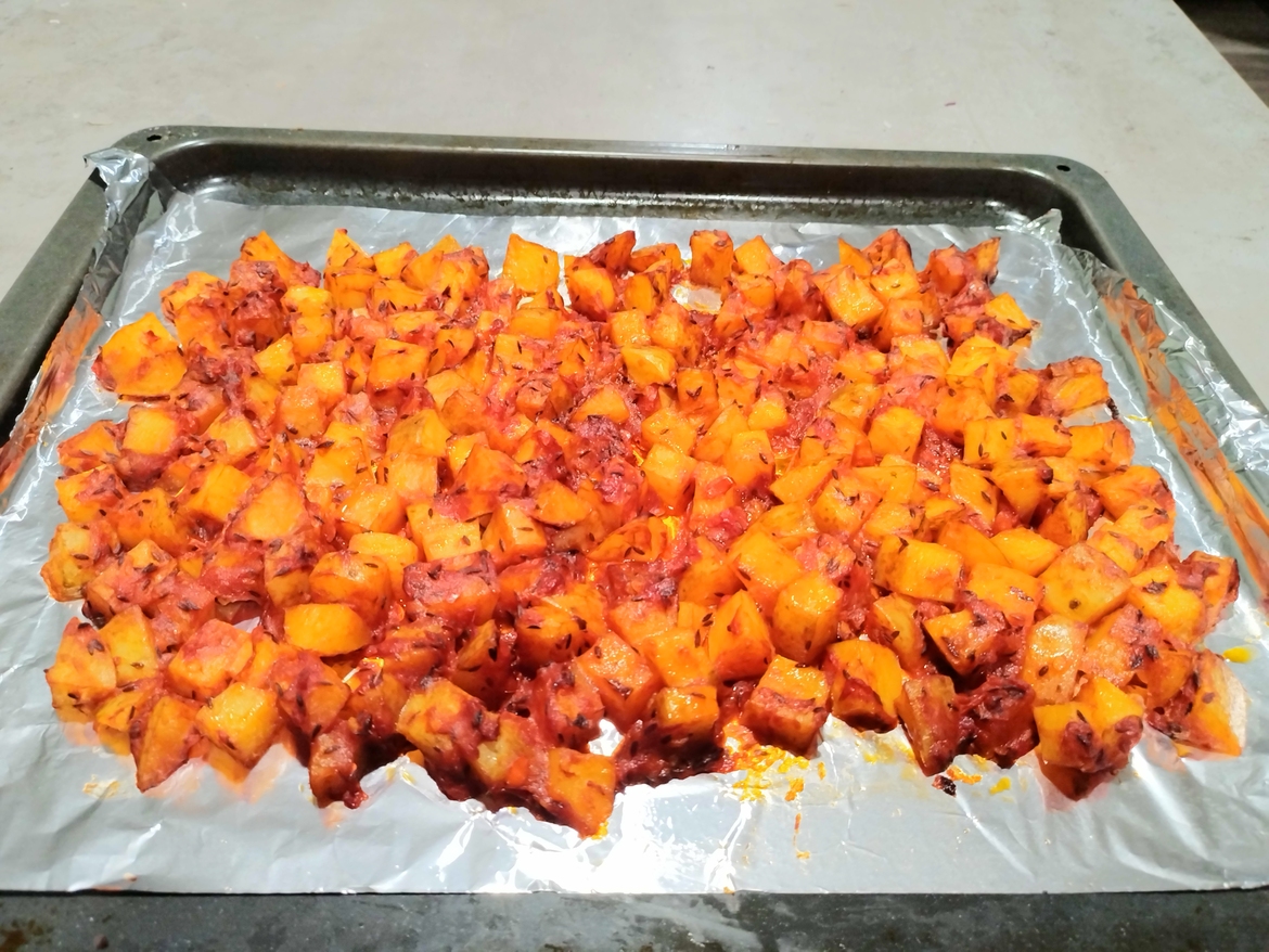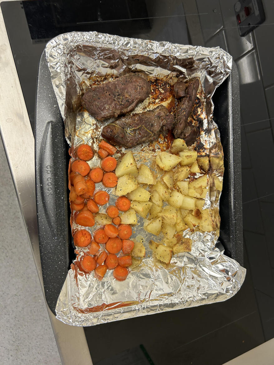 This is a great alternative to a turkey for a flatmas dinner, and as it's all done in one baking tray, there's less washing up!