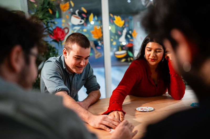 Meet: Join friendly gatherings like the Community Lounge and Global Café, where you can share experiences, get creative, and make new friends.