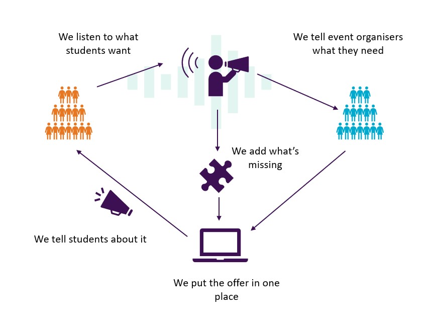 We're taking the same collaborative approach we use in Welcome Week, and we're applying it to year-round extra-curricular student experience. We work with both staff and students to present extra-curricular activity for students at Warwick in one place.