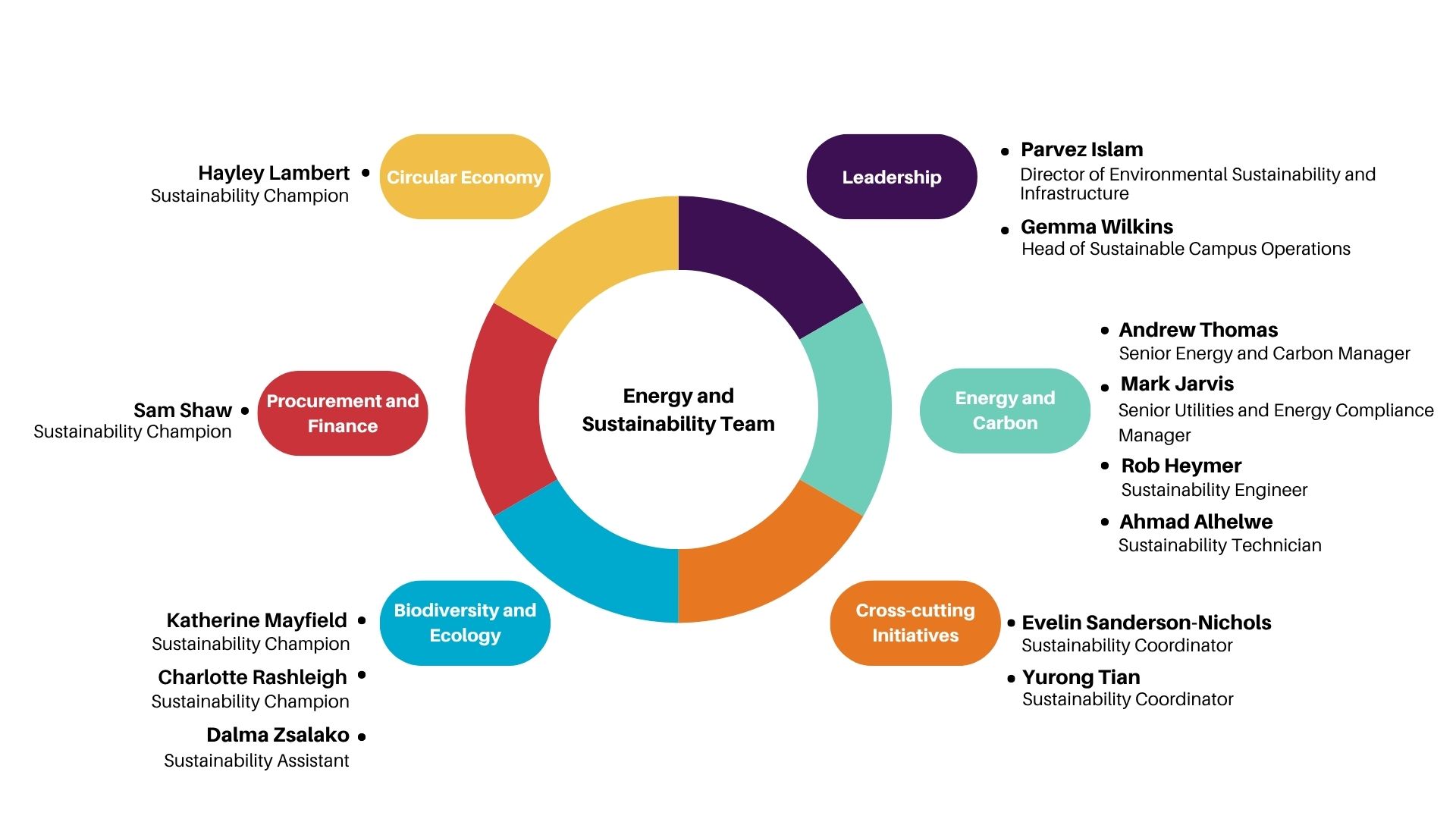 The Energy and Sustainability Team are based in Estates, and champion the Way to Sustainable strategyLink opens in a new window, with a focus on Environmental Sustainability.